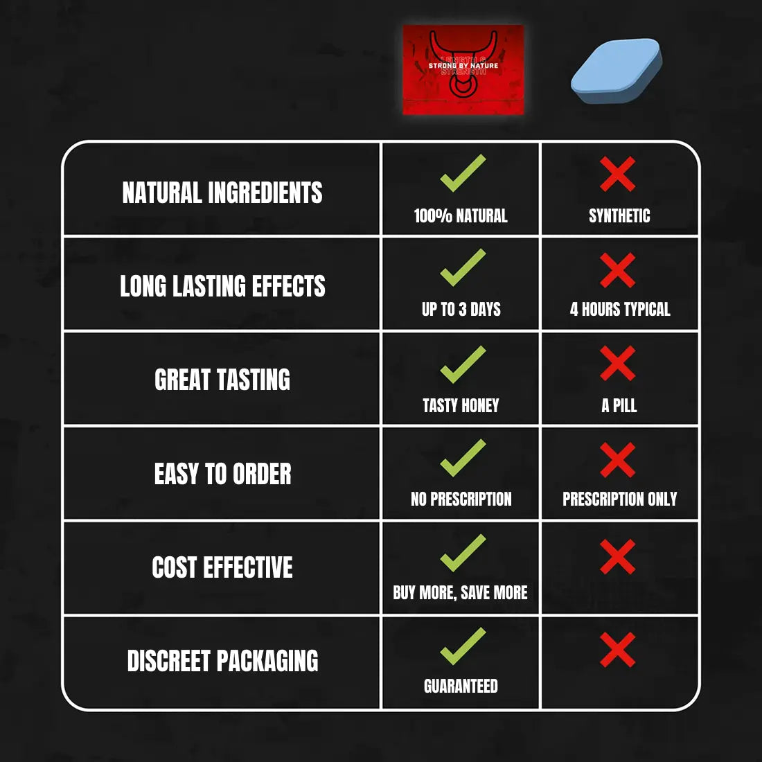Natural ingredients better taste longer results. No prescriptions no pills just a powerful boost that lasts up to 3 days. Backed by guaranteed discreet packaging and real savings with subscription.